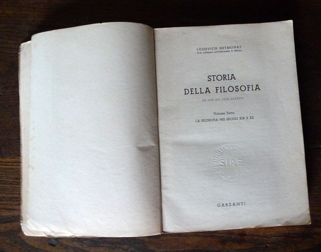 Geymonat,STORIA DELLA FILOSOFIA ad uso dei Licei Classici vol.III,1957 Garzanti