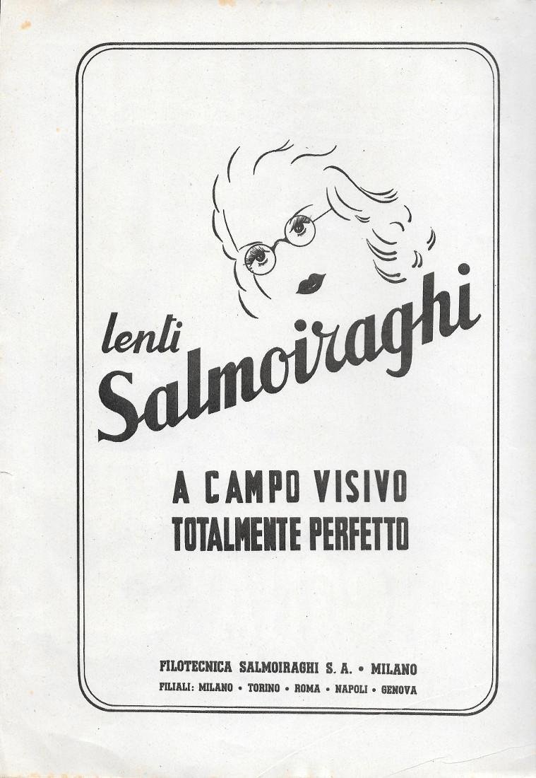 Gincana Bisleri/Lenti Salmoiraghi. Advertising 1942 fronte retro