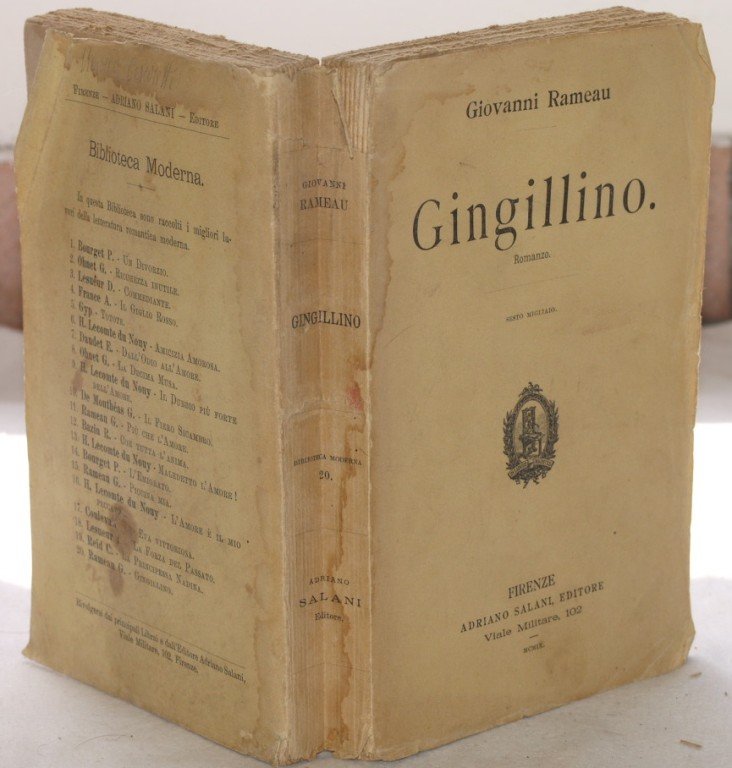In 8. Dim. 19x13 cm. Pp. 351. Edizione italiana del 1909 di questo romanzo dello scrittore francese Jean Rameau (1858-1942), pseudonimo di Laurent Lebaight. La prima edizione francese venne pubblicata nel 1905. Brossura editoriale in buone condizioni generali con lievi usure ai margini e dorso e gore d'umidità. Legatura in buone condizioni. All'interno le pagine si presentano in buone condizioni con rare fioriture ma con una gora d'umidità al margine superiore che attraversa tutto il volume. Italian edition of 1909 of this novel by the french writer Jean Rameau (1858-1942), pseudonymous of Laurent Lebaight. The first french edition was published in 1905. Editorial cover in good general conditions slightly worn in the edges and spine and humidity stains. Binding in good conditions. Inside pages are in good conditions with occasional foxings but an humidity stain in the upper edge of the whole volume.