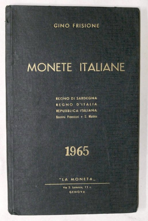 Gino Frisione - Monete Italiane Regno Sardegna , d'Italia, Rep. Italiana - 1965 Pag. 87 con illustrazioni Copertina rigida - Testo in italiano. Condizioni generali molto buone.