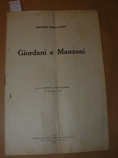 Giordani e Manzoni. Dalla Nuova Antologia 16 gennaio 1918