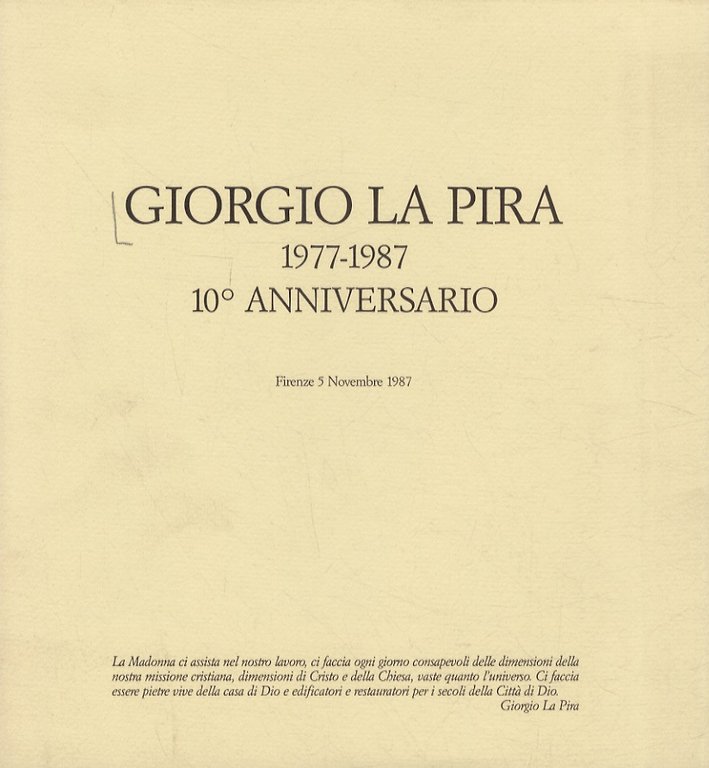 GIORGIO LA PIRA. 1977-1987. 10° anniversario. Firenze 5 novembre 1987.