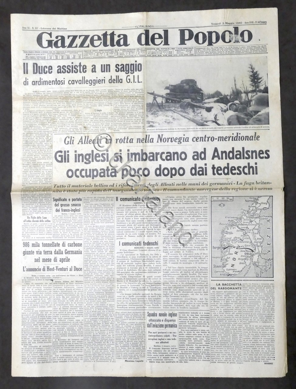 Giornale - Gazzetta del Popolo N. 107 Gli inglesi si imbarcano ad Andalsnes 1940