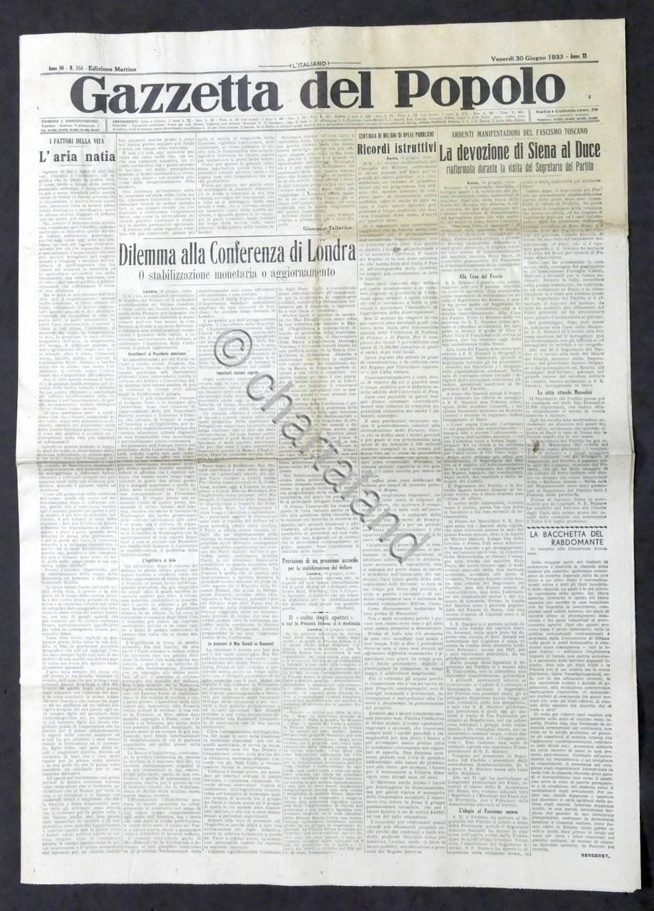 Giornale - Gazzetta del Popolo N. 154 - Dilemma alla Conferenza di Roma - 1933