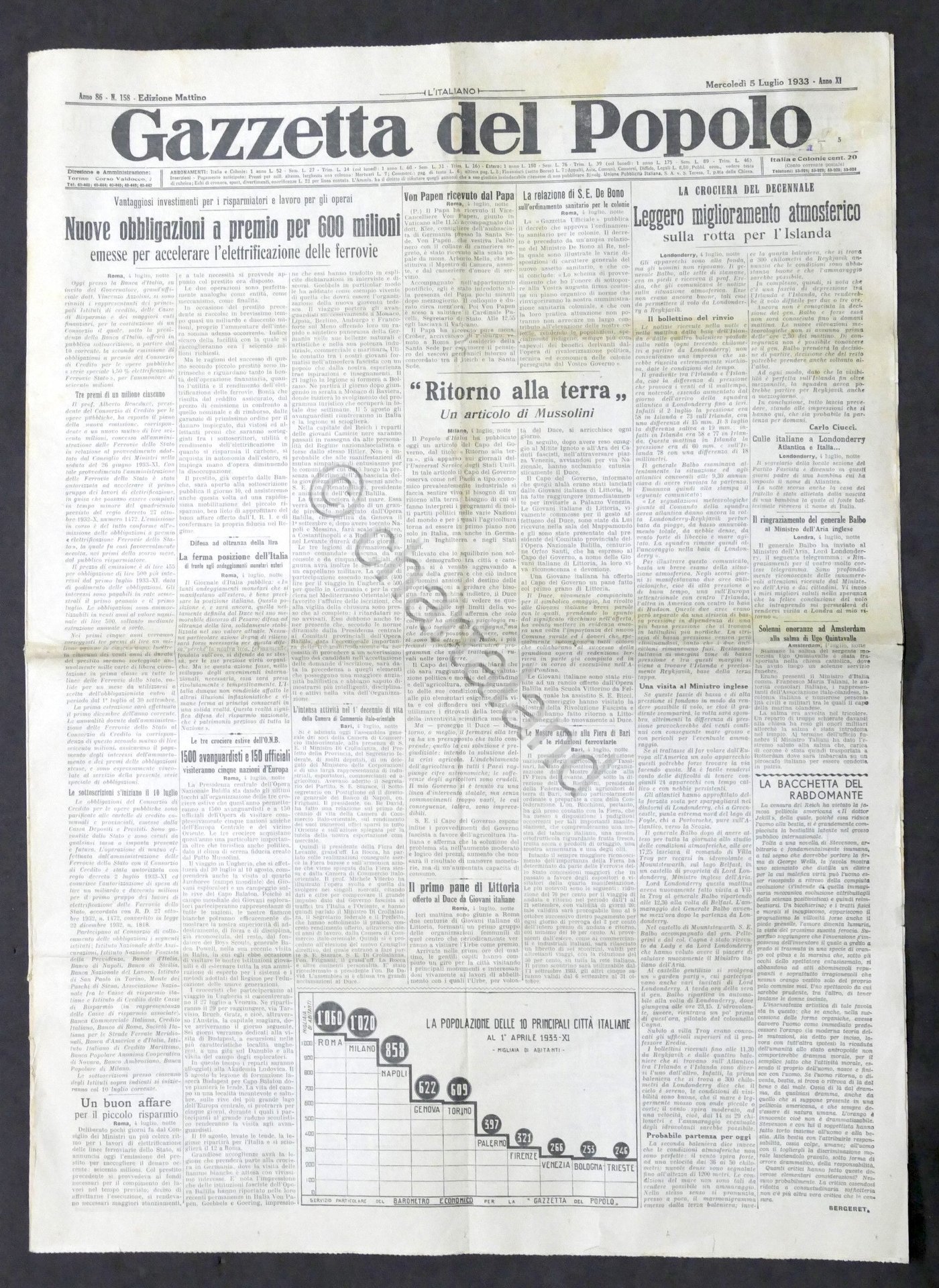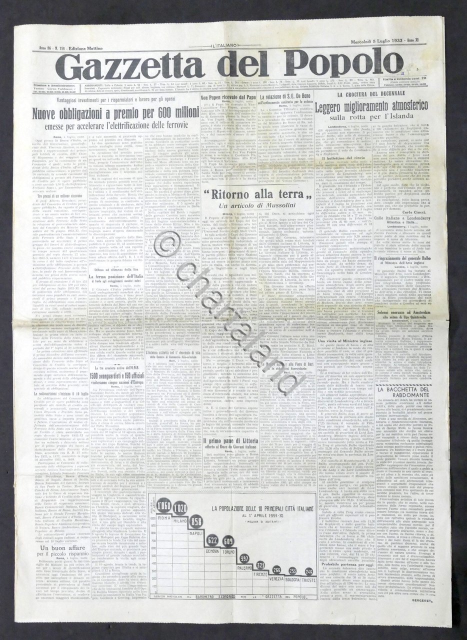 Giornale - Gazzetta del Popolo N. 158 Obbligazioni a premio per 600 milioni 1933