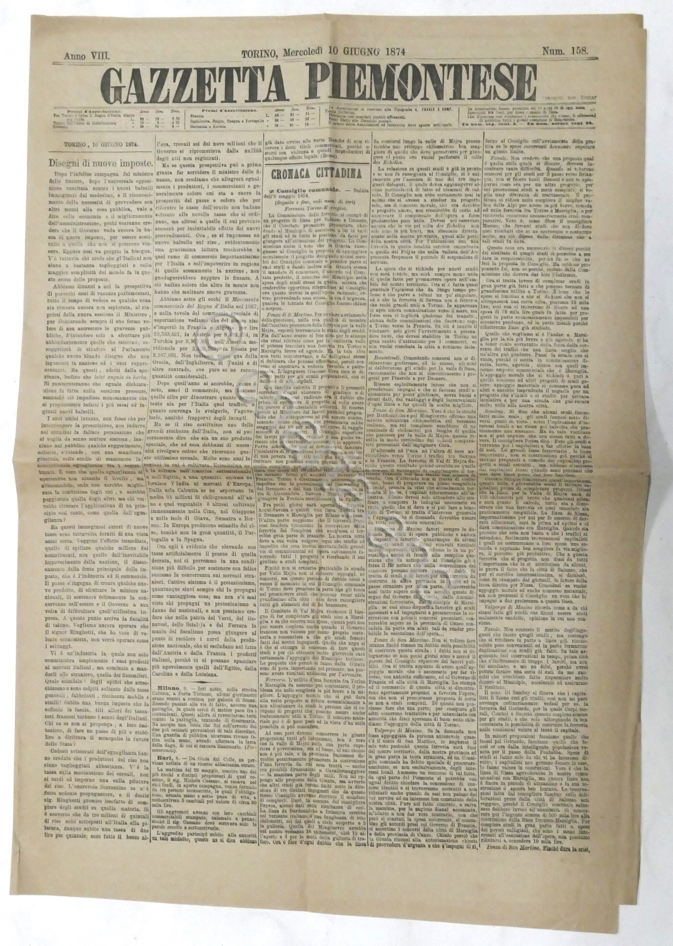 Giornale - Gazzetta Piemontese - Anno VIII - N. 158 - 1874 - Articolo Ferrovie