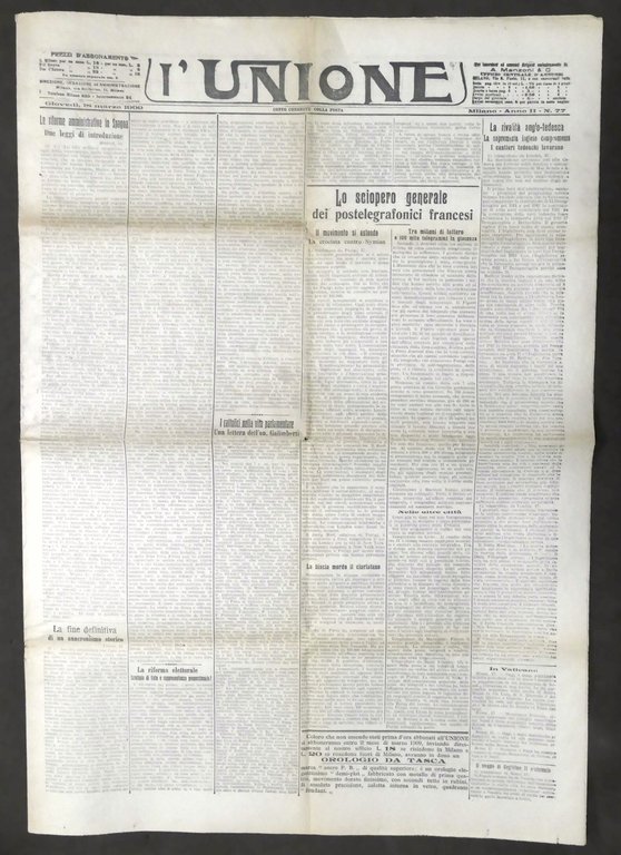 Giornale - L'Unione - Anno II - N. 77 - 18 Marzo 1909 Sciopero postelegrafonici