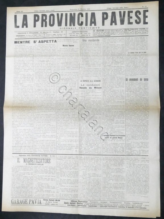 Giornale - La Provincia Pavese - N. 83 - 1918 - Condizioni fissate da Wilson