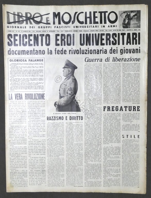 Giornale - Libro e Moschetto - Anno XV - N. 49 - 1941 - Eroi universitari
