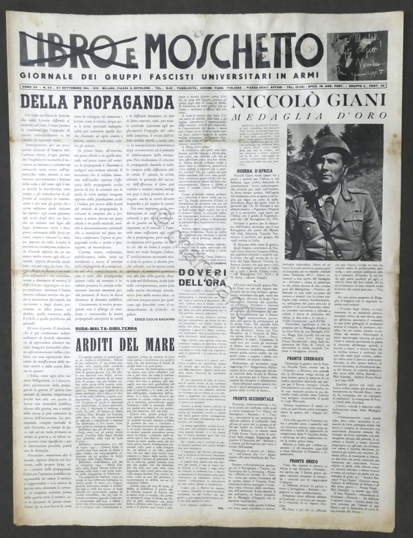 Giornale - Libro e Moschetto - Anno XV - N. 54 - 1941 - Niccol&ograve, Giani medaglia d'oro