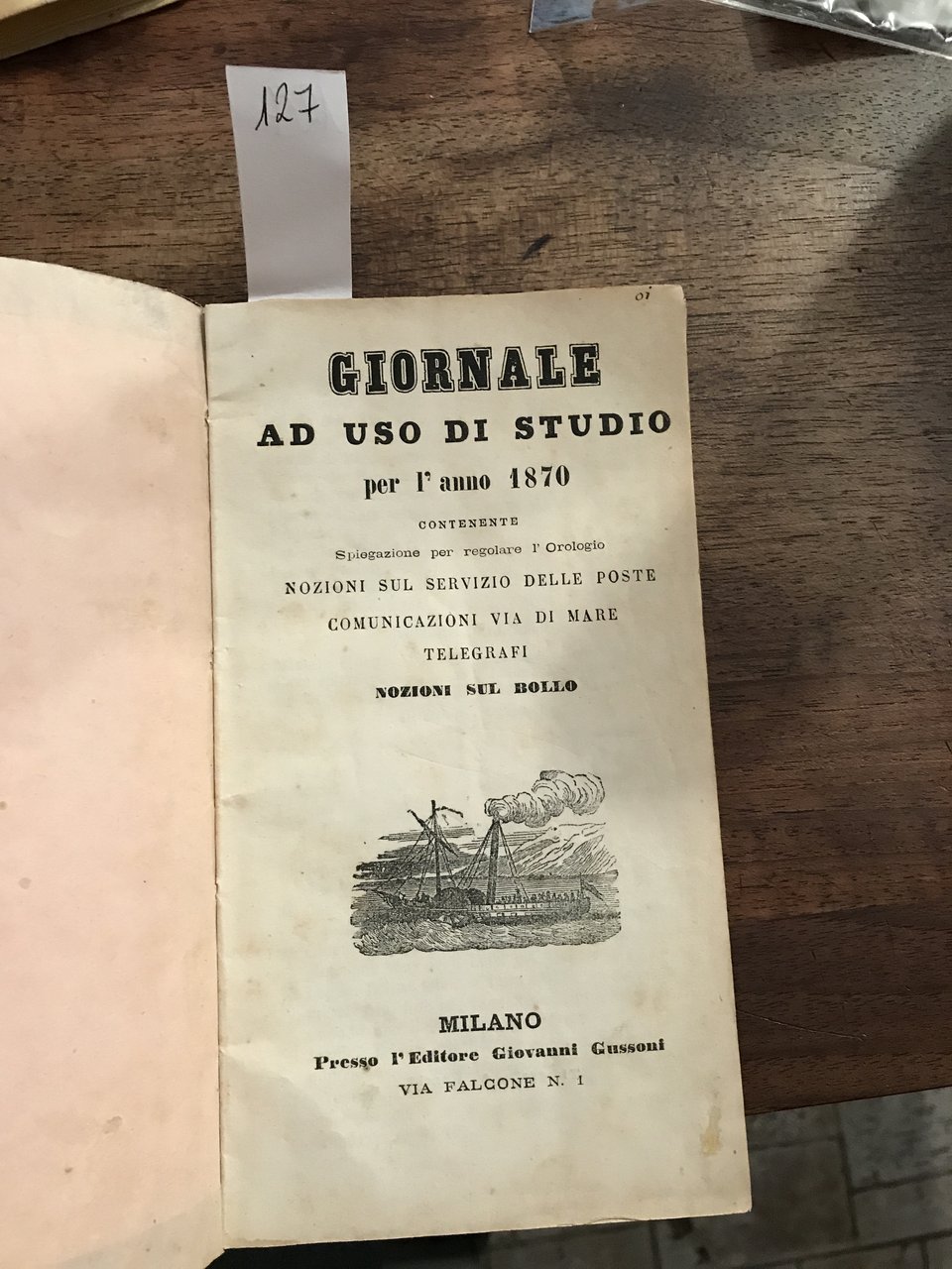 Giornale ad uso di studio per l'anno 1870. Contenente spiegazione per regolare l'orologio, nozioni sul servizio delle poste, comunicazioni via di mare, telegrafi e nozioni sul bollo