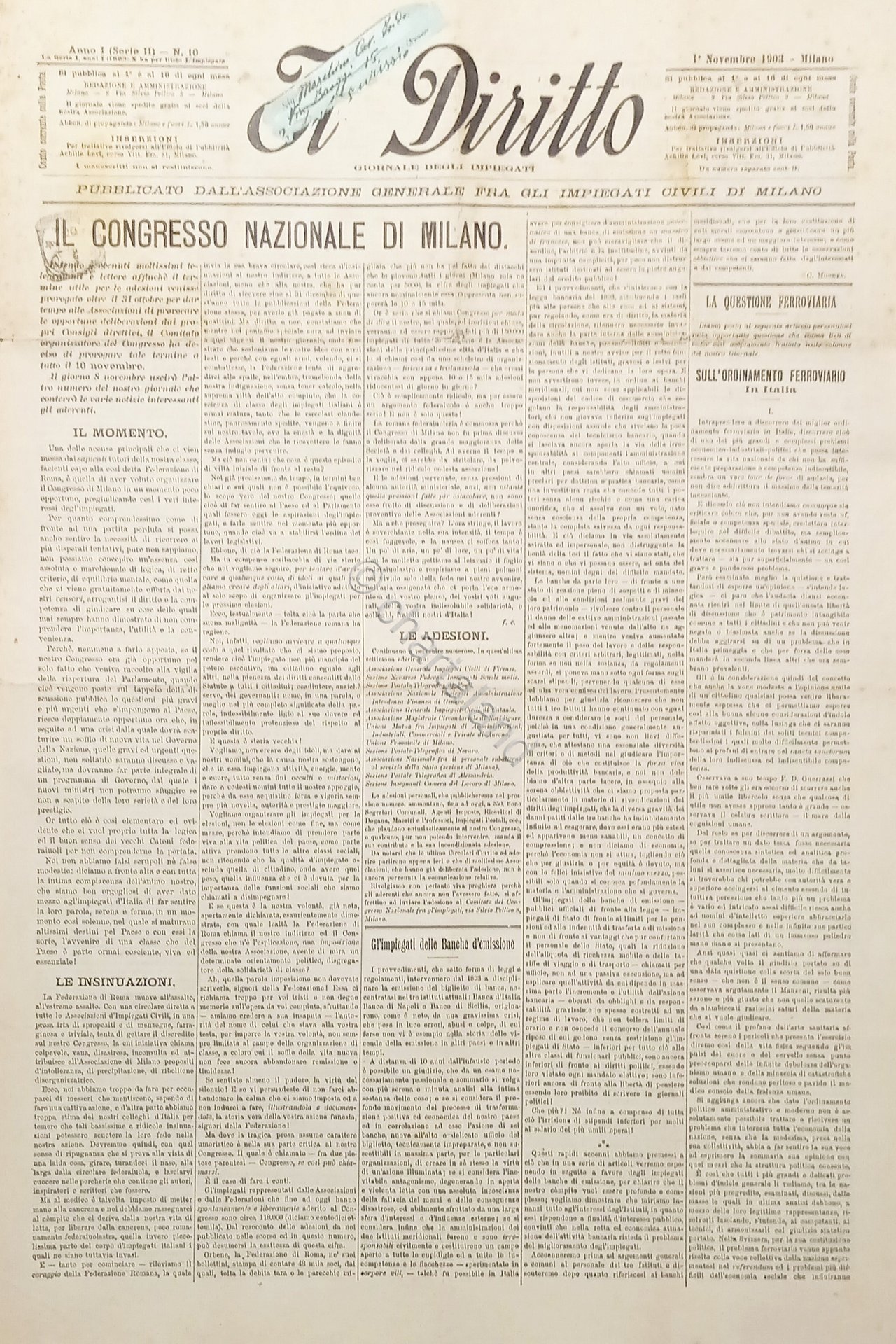Giornale degli Impiegati - Il Diritto N. 10 - Congresso Nazionale di Milano 1903