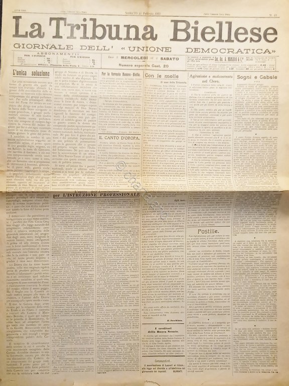 Giornale dell'Unione Democratica - La Tribuna Biellese N. 12 - 1922