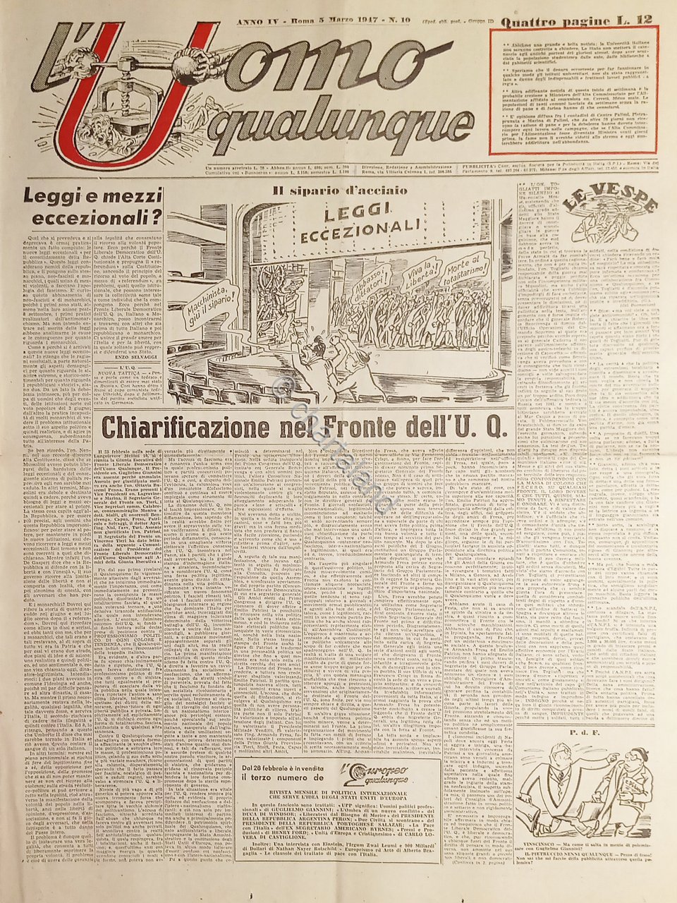 Giornale di G. Giannini - L'Uomo qualunque N. 10 Chiarificazione nel Fronte 1947