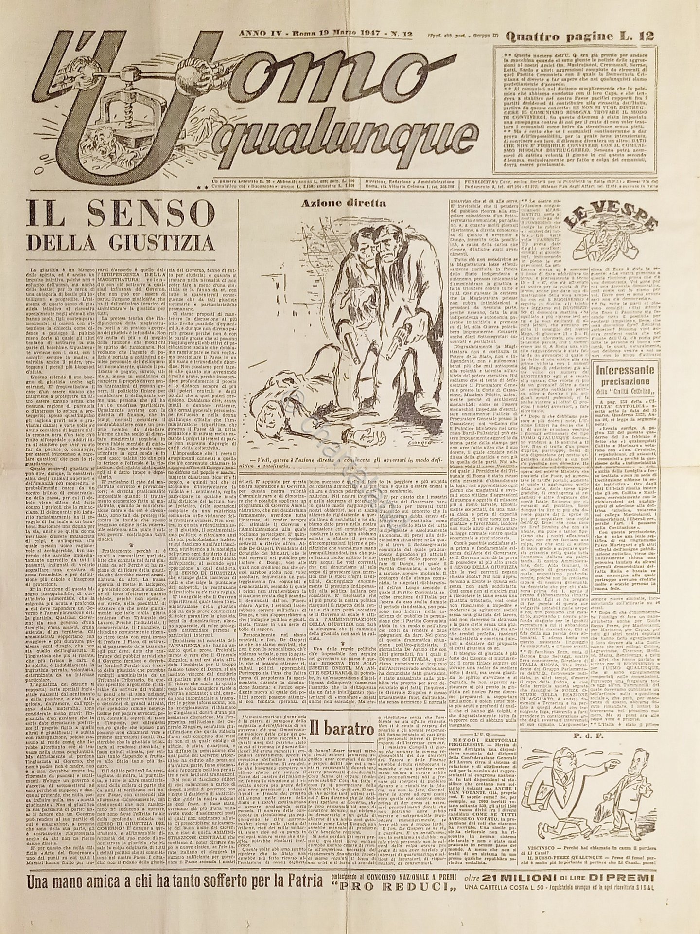 Giornale di G. Giannini - L'Uomo qualunque N. 12 - Senso della Giustizia - 1947
