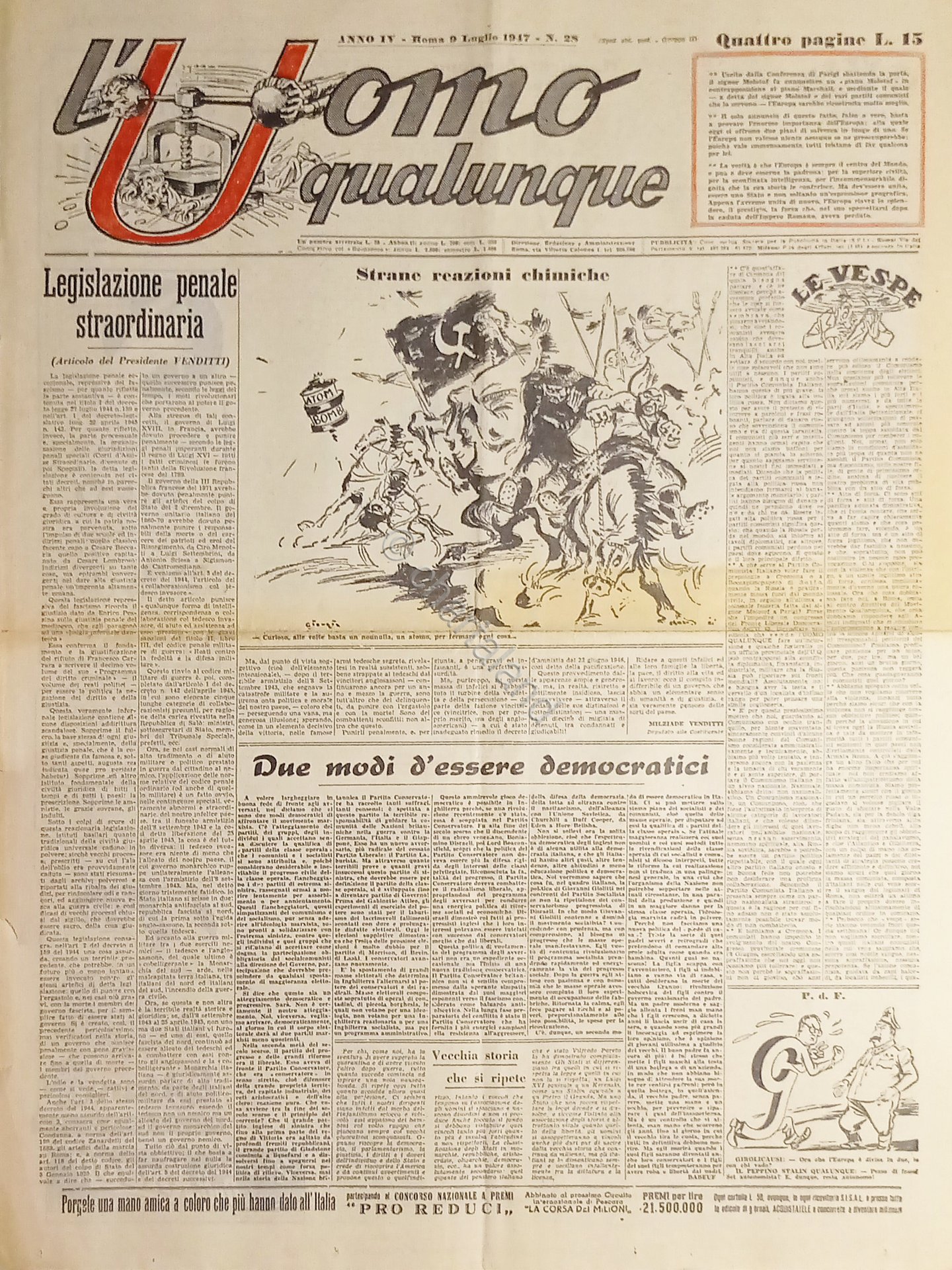 Giornale di G. Giannini - L'Uomo qualunque N. 28 - Strane reazioni chimiche 1947