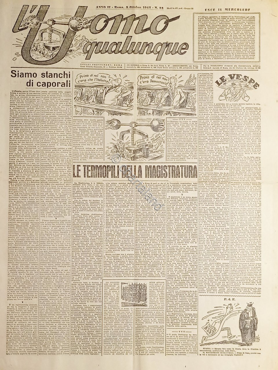 Giornale di G. Giannini - L'Uomo qualunque N. 33 - Termopili della Magistra 1945