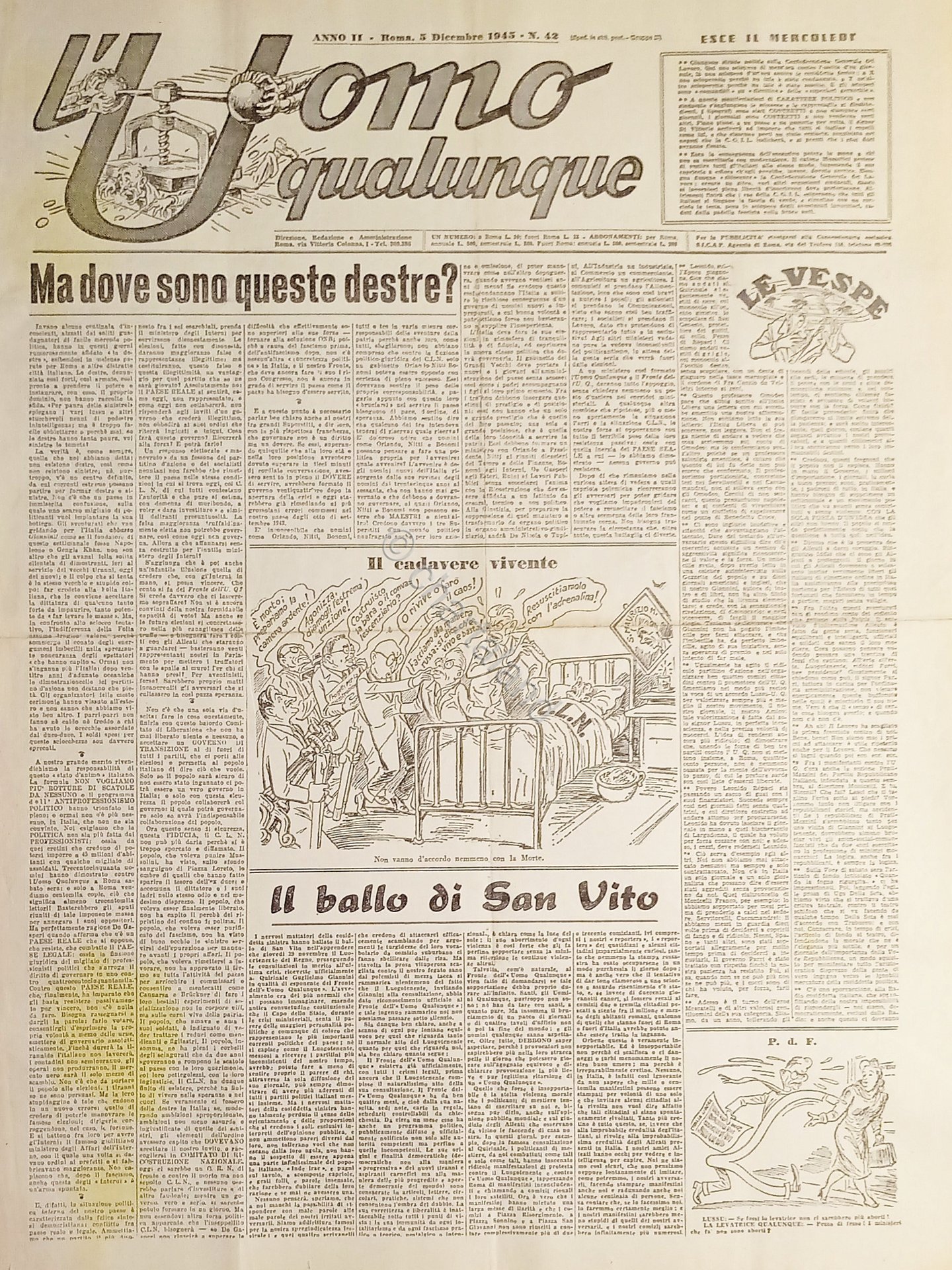 Giornale di G. Giannini - L'Uomo qualunque N. 42 - Il ballo di San Vito - 1945
