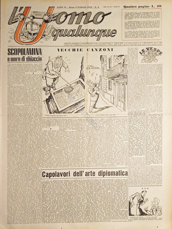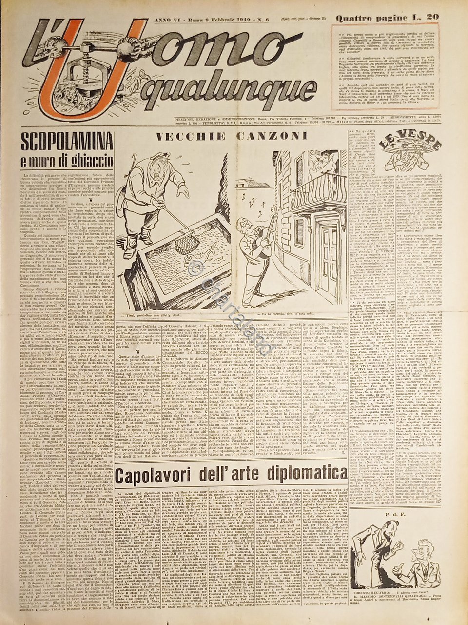 Giornale di G. Giannini - L'Uomo qualunque N. 6 - Vecchie Canzoni - 1949