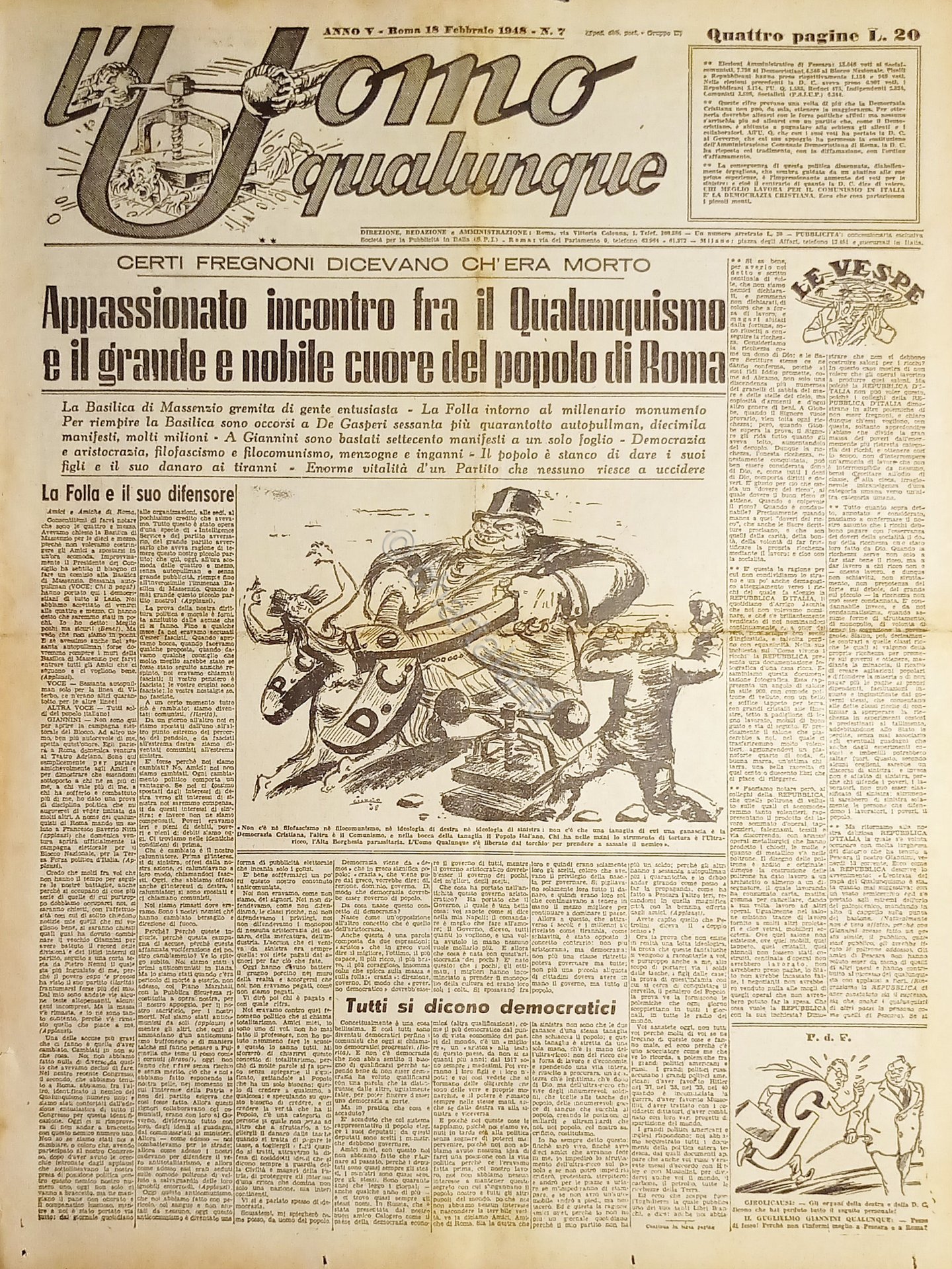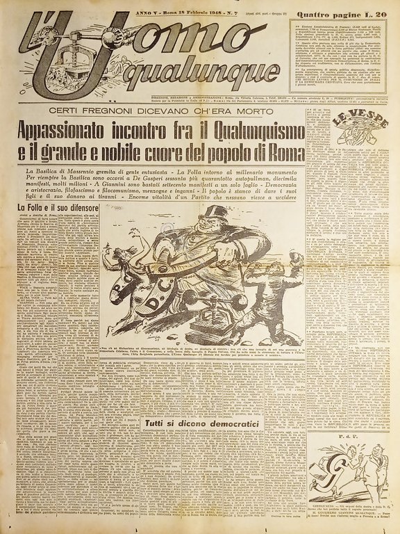 Giornale di G. Giannini - L'Uomo qualunque N. 7 - Incontro a Roma - 1948