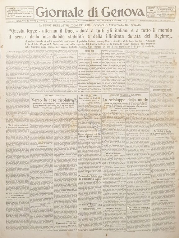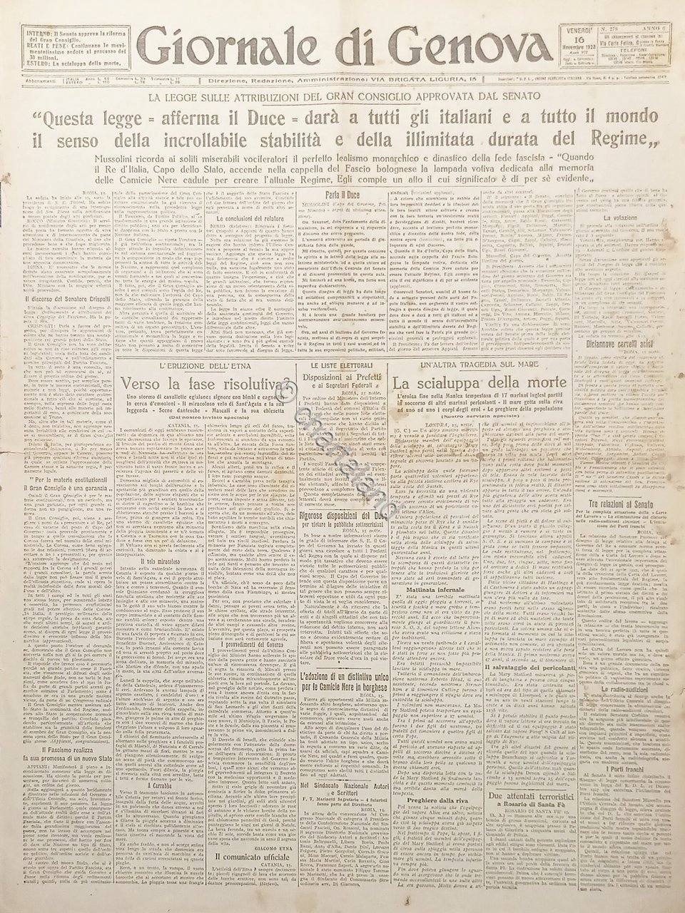 Giornale di Genova N. 278 - La legge sulle attribuzioni del Gran Consiglio 1928