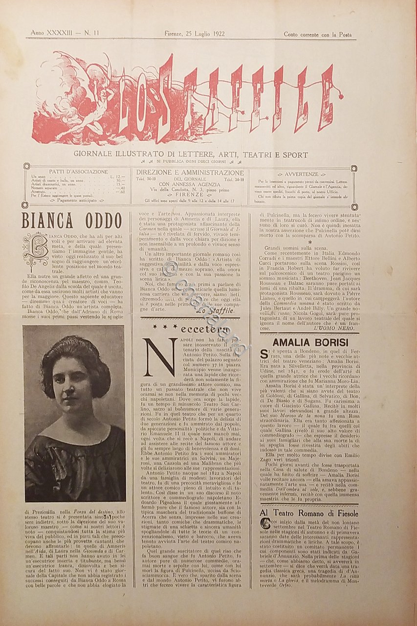 Giornale di Teatri Lettere e Arti - Lo Staffile N. 11 - Bianca Oddo - 1922