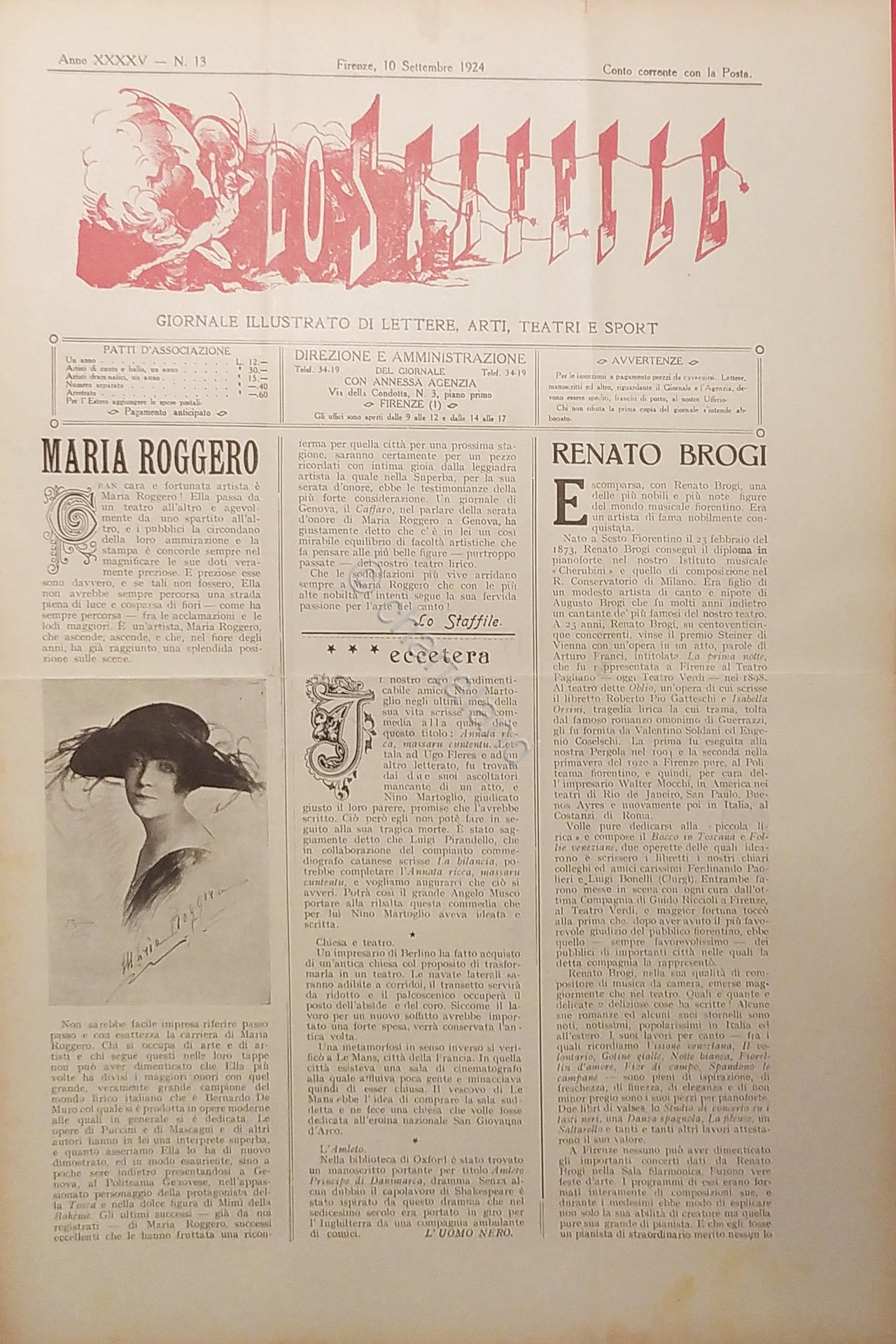 Giornale di Teatri Lettere e Arti - Lo Staffile N. 13 - Maria Roggero - 1924