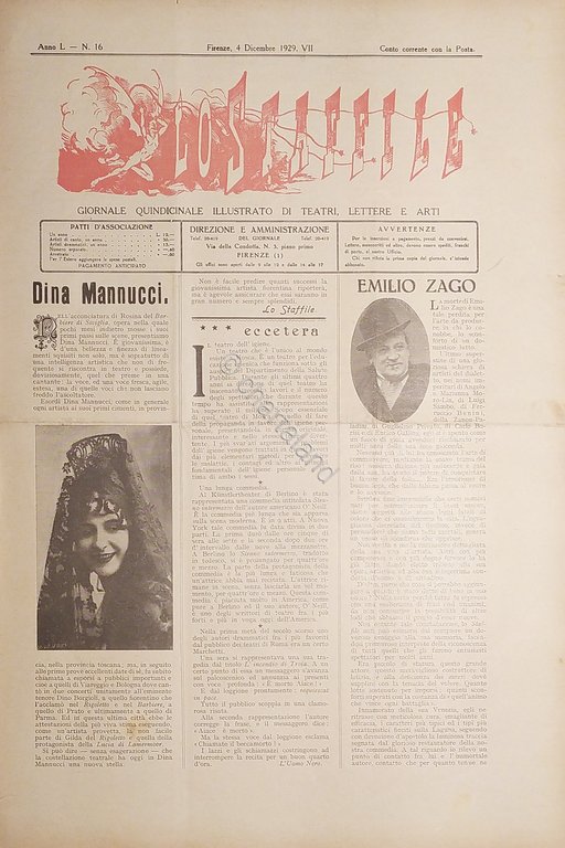 Giornale di Teatri Lettere e Arti - Lo Staffile N. 16 - Dina Mannucci - 1929