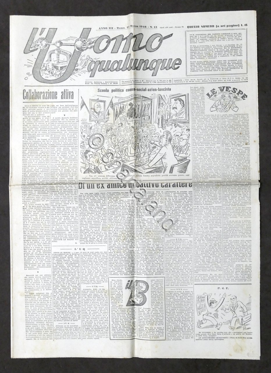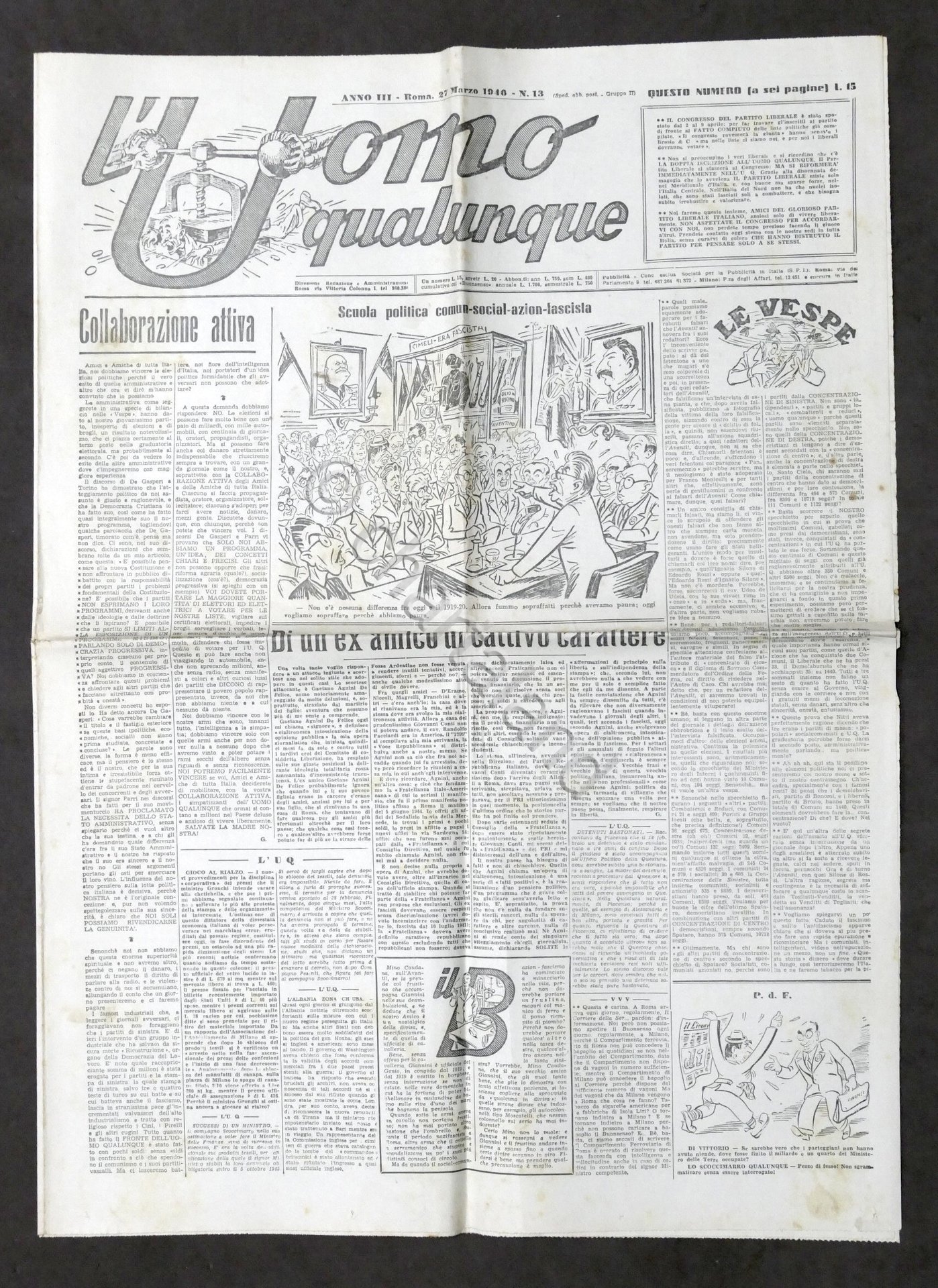 Giornale G. Giannini - L'Uomo qualunque  N. 13 - 1946 Testo in lingua italiana, Pag. 6 Condizioni molto buone