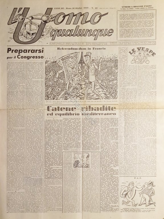 Giornale G. Giannini - L'Uomo qualunque N. 42 - Referendum in Francia - 1946
