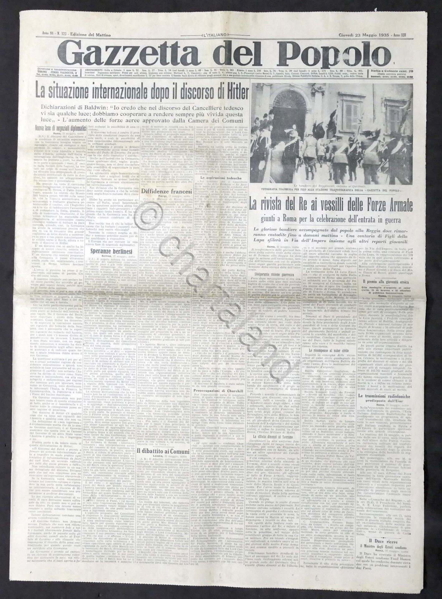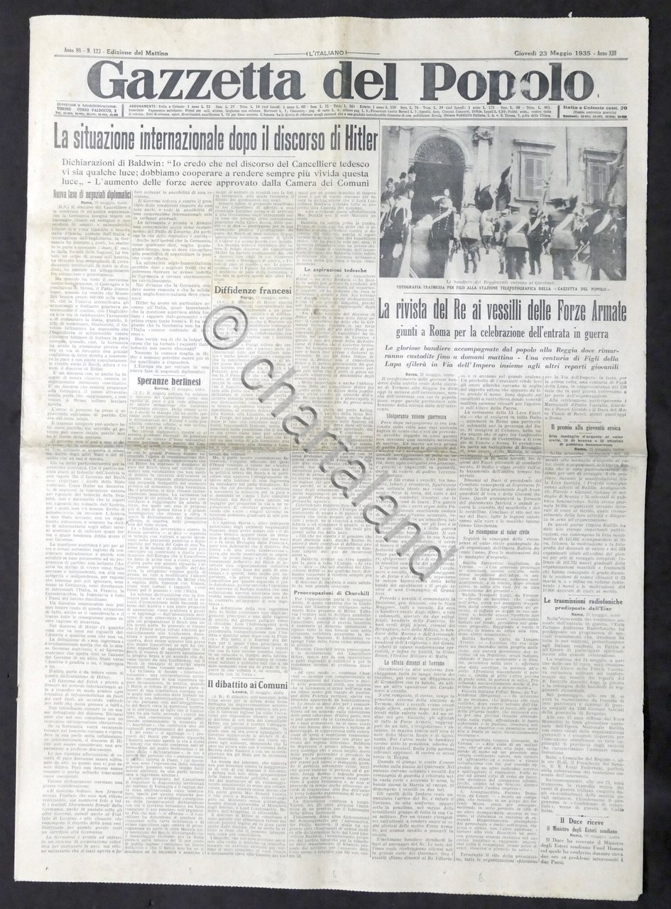 Giornale Gazzetta del Popolo N. 123 - Rivista Re ai vessilli Forze Armate - 1935