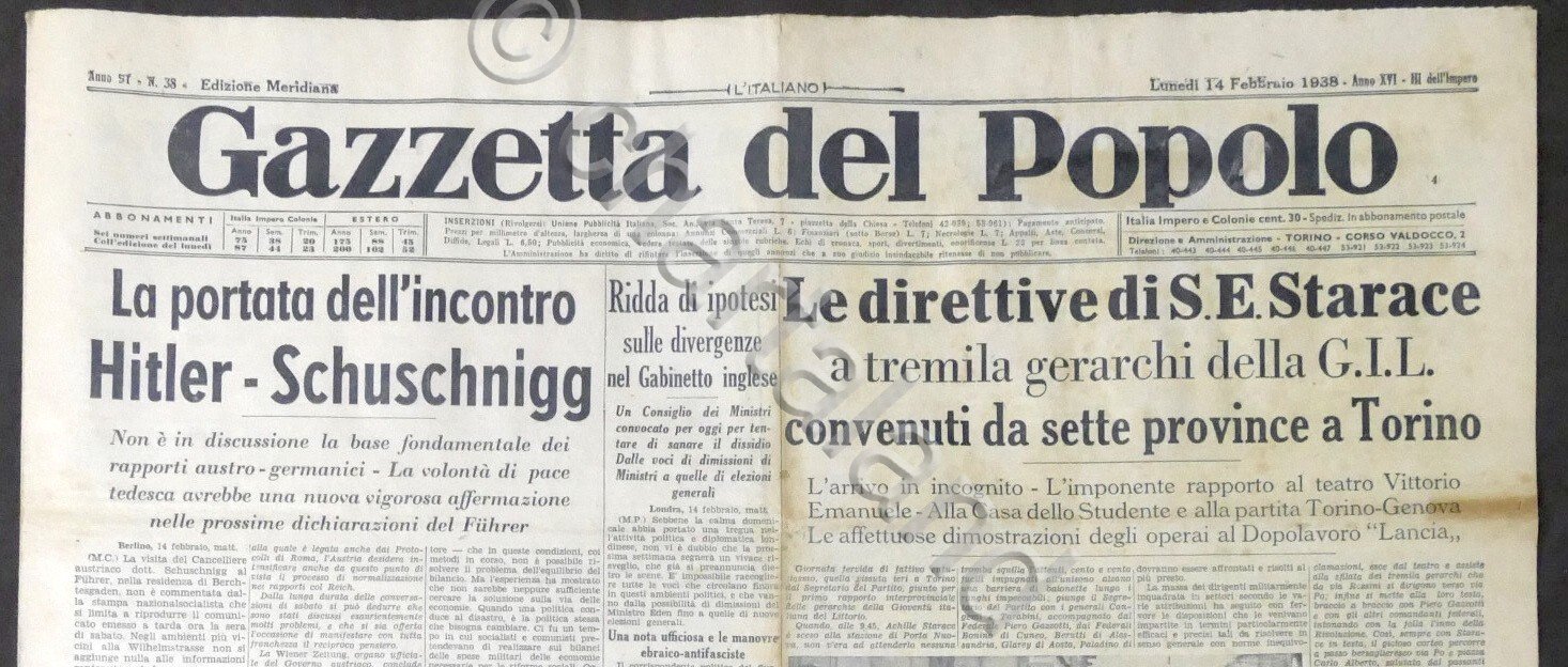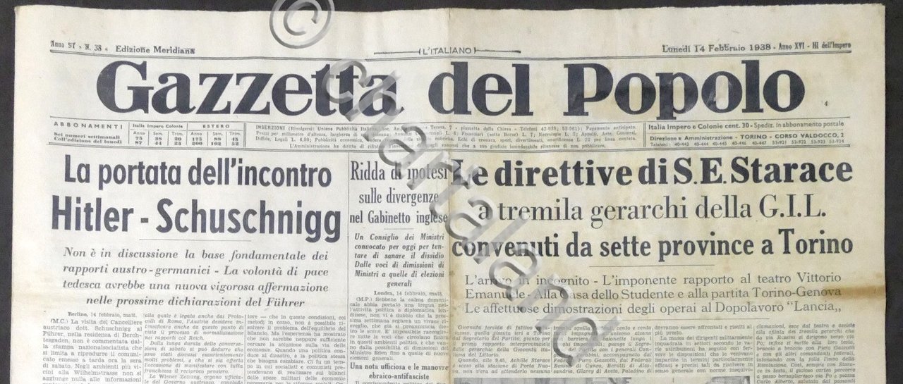 Giornale Gazzetta del Popolo N. 38 La portata incontro Hitler - Schischnigg 1938