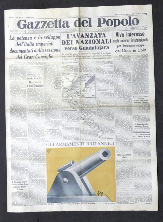 Giornale Gazzetta del Popolo N. 59 - L'avanzata Nazionali verso Guadalajara - 1937 Testo in lingua italiana, Pag. 6 con illustrazioni Condizioni buone