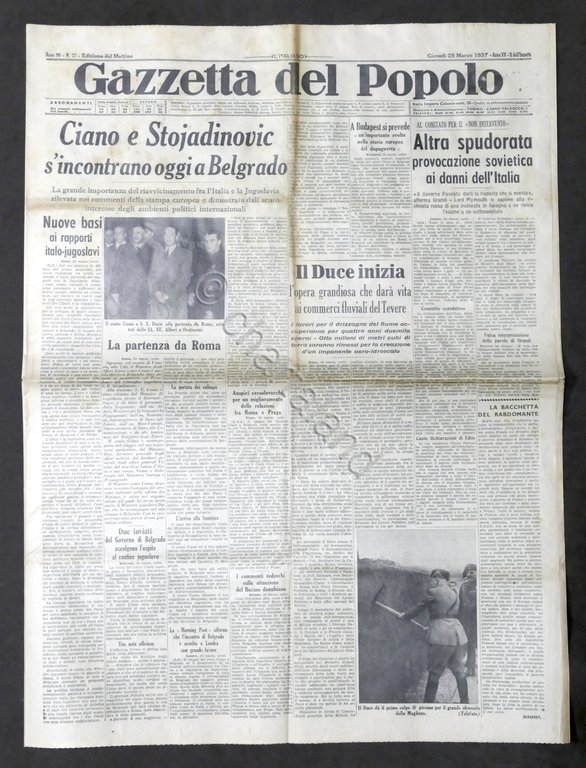 Giornale Gazzetta del Popolo N. 72 - Ciano e Stojadinovic a Belgrado - 1937