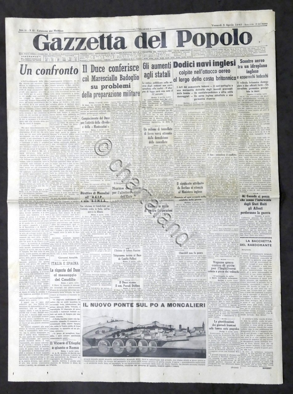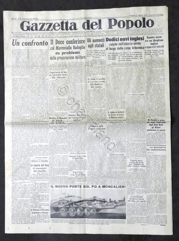 Giornale Gazzetta del Popolo N. 83 Duce conferisce con Maresciallo Badoglio 1940 Testo in lingua italiana, Pag. 4 con illustrazioni Condizioni buone