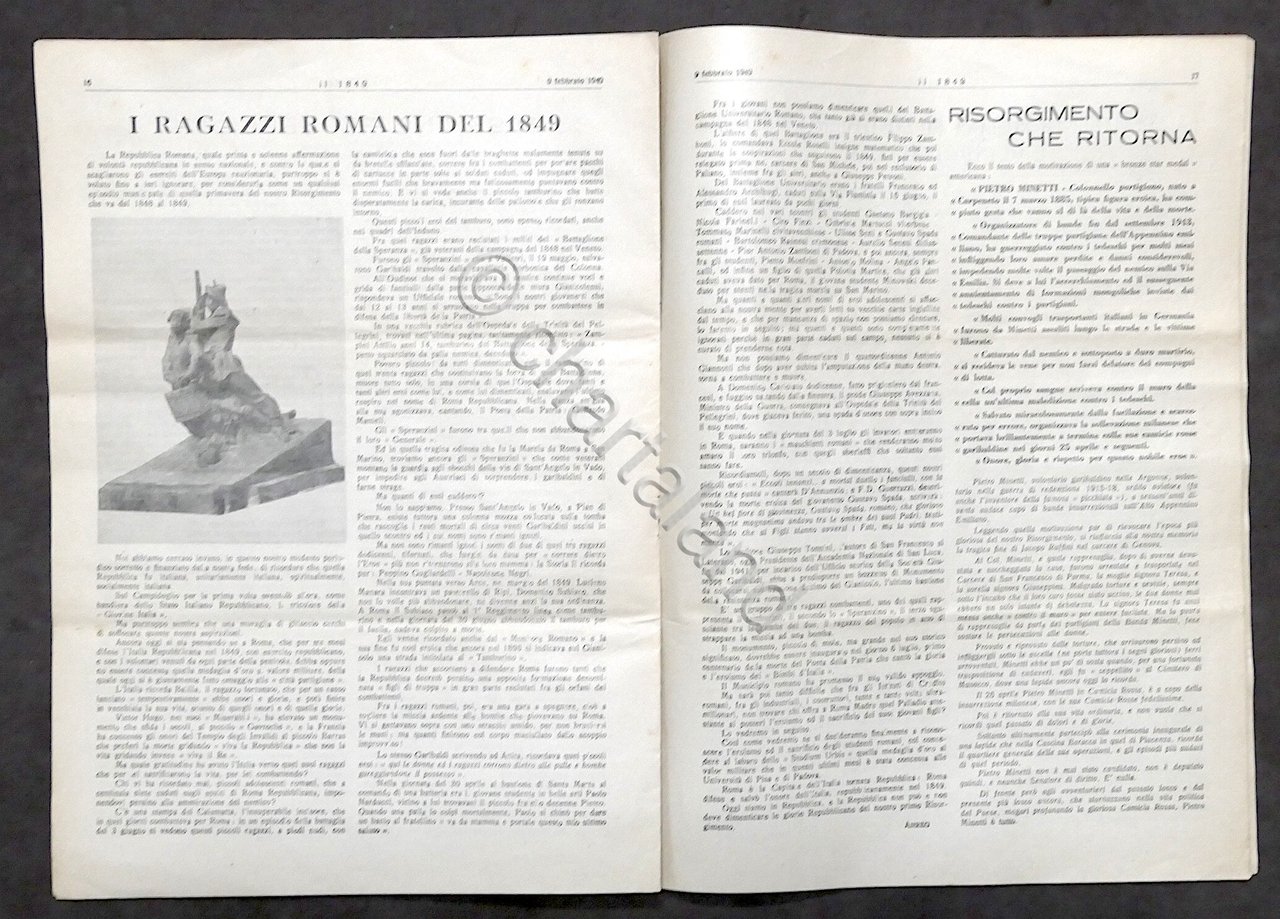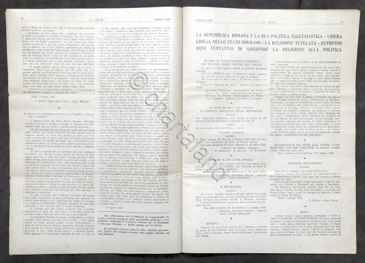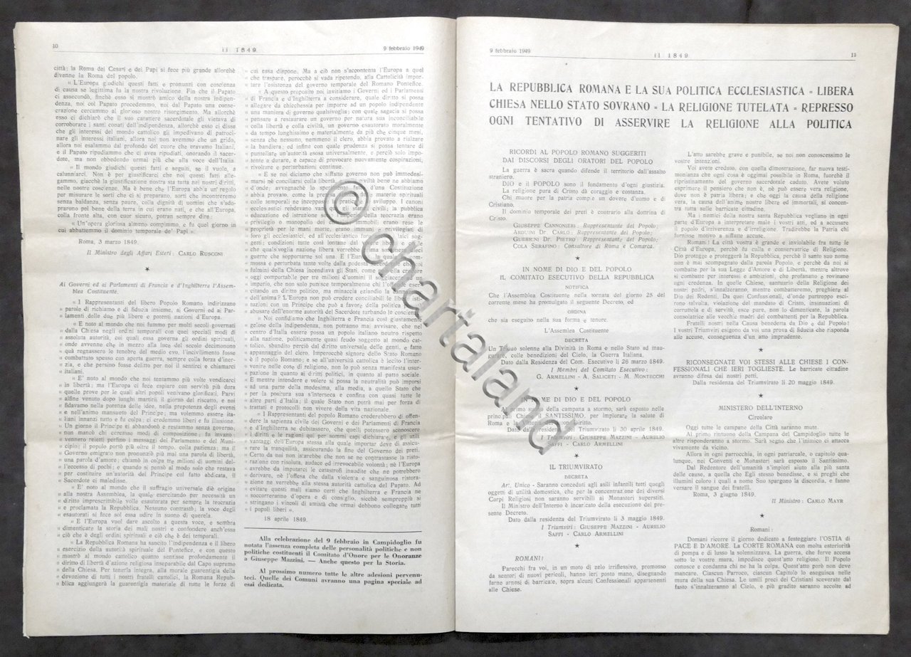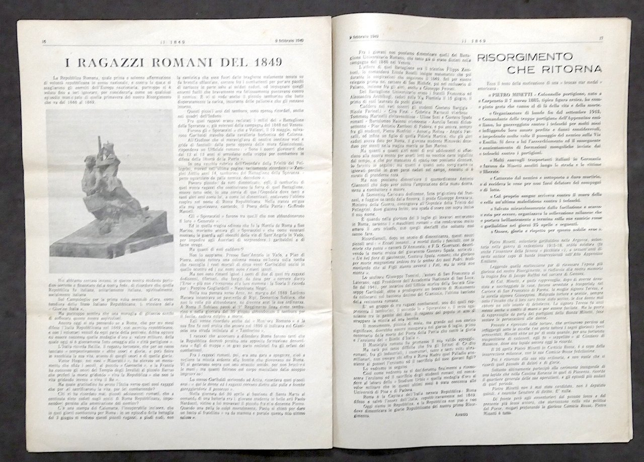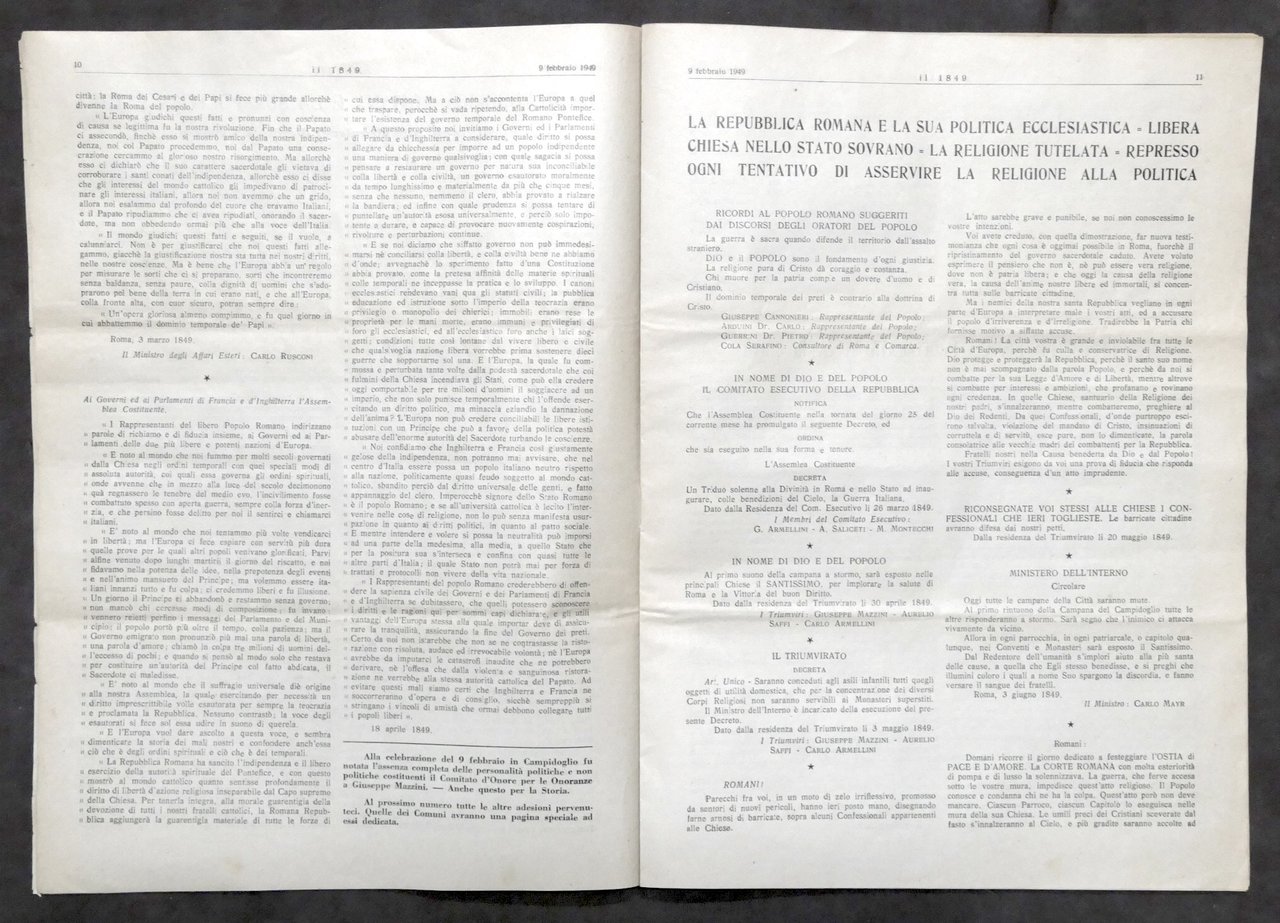 Giornale Il 1849 - N. 6-7-8 - febbraio 1949 - Centenario Repubblica Romana