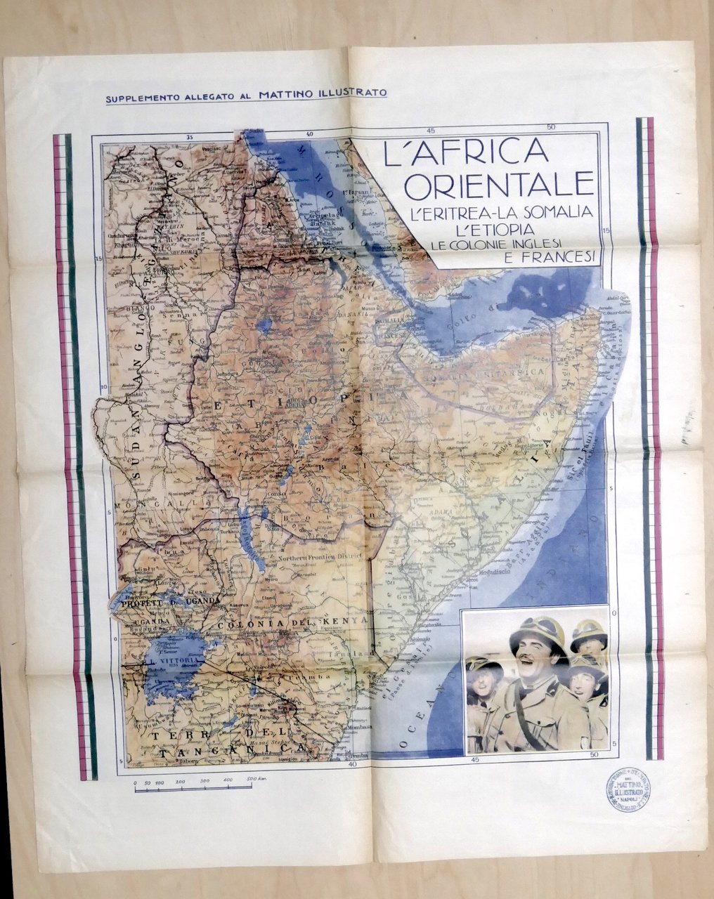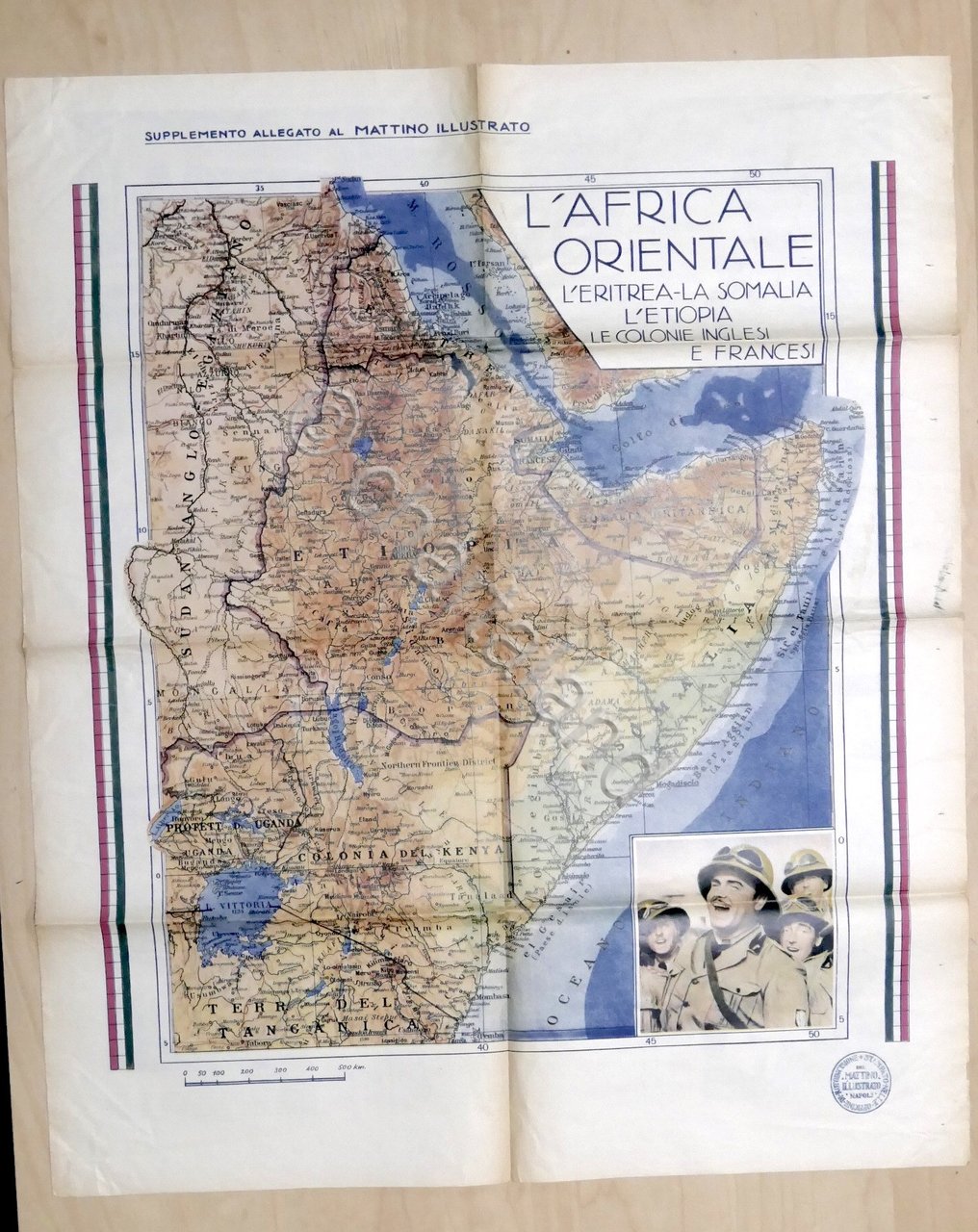 Giornale - Il Mattino Illustrato - Anno XII - N. 44 - 1935 Pag. 8 Allegata carta geografica dell'Africa Orientale (dimensioni: 60 x 72 cm ca.) Lingua italiana. Condizioni buone, come da foto.
