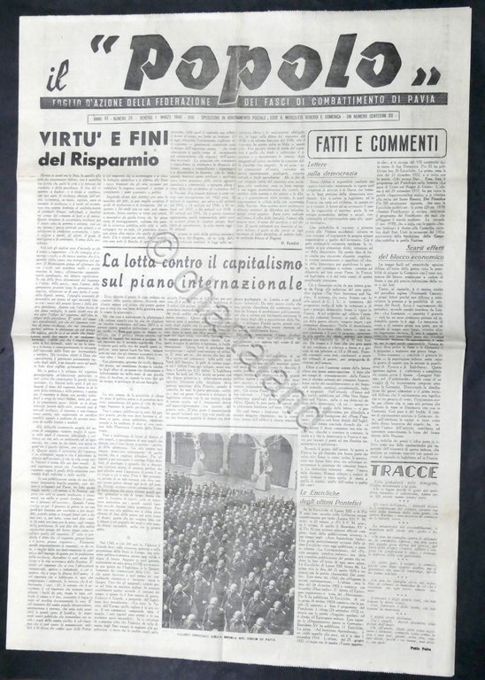Giornale il Popolo - Federazione Fasci di Combattimento di Pavia - N. 26 - 1940
