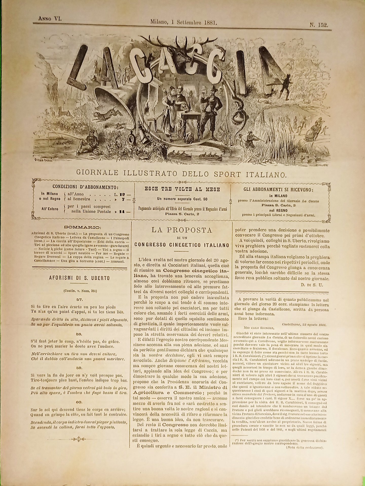 Giornale Illustrato dello Sport Italiano - La Caccia N. 152 - 1 Settembre 1881