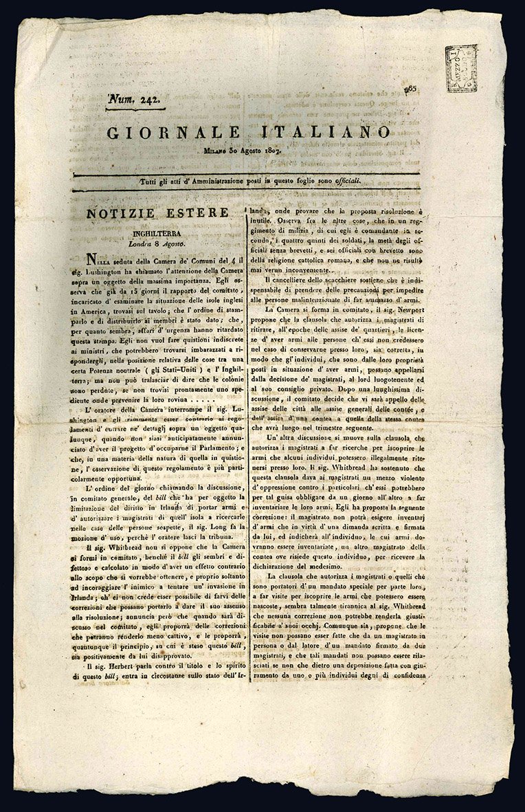 Il Giornale Italiano, una sorta di Gazzetta Ufficiale, fu utilizzato durante la dominazione francese della Lombardia per la pubblicazione quotidiana delle leggi e di una cronaca attentamente controllata e selezionata. Nel 1816, dopo le vicende napoleoniche, riprese le pubblicazioni con il nome di Gazzetta di Milano.