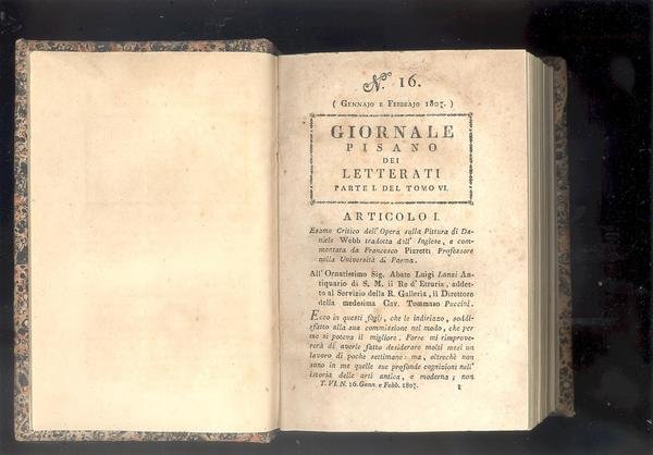 GIORNALE PISANO DEI LETTERATI. <BR>TOMO VI ( PARTE I N°16 GENNAIO e FEBBRAIO. PARTE I N°17 MARZO e APRILE. PARTE III N°18 MAGGIO e GIUGNO<BR>GIUGNO )<BR> GIUGNO )