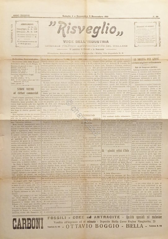 Giornale Politico Biellese - Risveglio Voce dell'Industria N. 88 - 1911