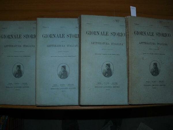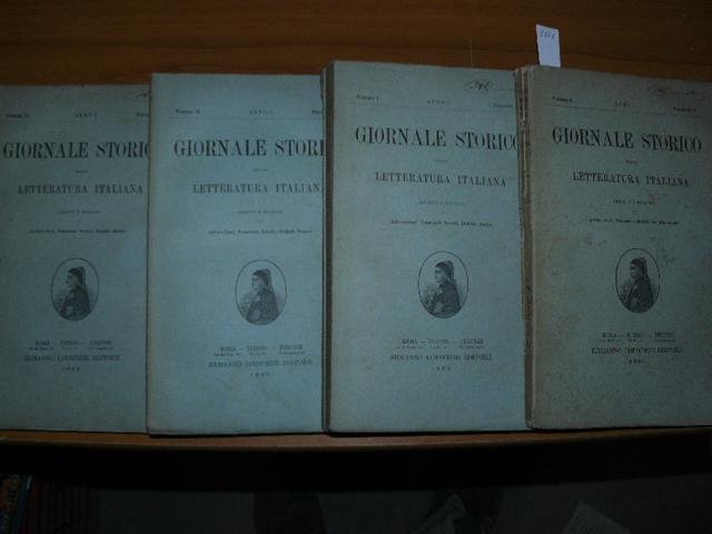 5 volumi in-8°, Anno primo 1883 completo a fascicoli sciolt, così suddivisi:. Fasc. 1 pp. 1-188. Fasc. 2 pp. 189-380. Fasc. 3 pp. 381-536. Fasc. 4-5 pp. 1-272 - Fasc., 6 pp. 273-480. Brossure edioriali. Buone condizioni. Il Giornale storico della letteratura italiana è il periodico più antico ed illustre fra quelli specificamente dedicati alla letteratura italiana. Venne fondato nel 1883 da Rodolfo Renier, Arturo Graf e Francesco Novati, tutti esponenti del cosiddetto “metodo storico”, di cui rappresentò l’organo più autorevole.