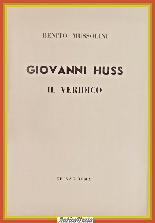 GIOVANNI HUSS IL VERIDICO di Benito Mussolini 1948 Edinac Libro reprint 1913