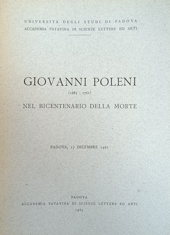 GIOVANNI POLENI (1683 - 1761) NEL BICENTENARIO DELLA MORTE