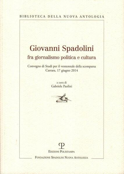 "Giovanni Spadolini fra giornalismo politica e cultura", edizione marzo 2015, pp. 85, formato 17 x 24.