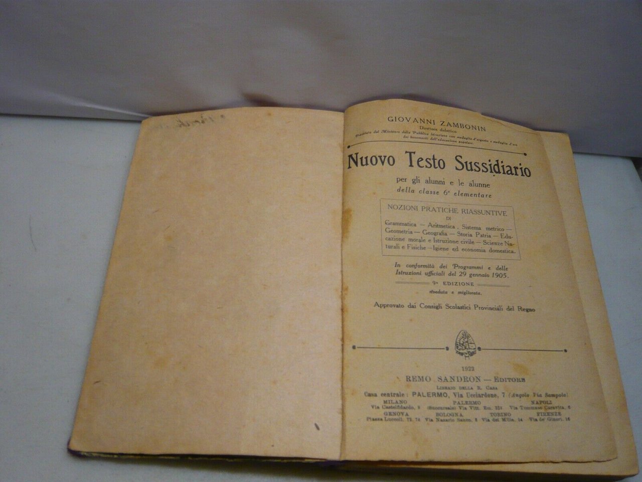 Giovanni Zamboni,NUOVO TESTO SUSSIDIARIO,Remo Sandro Editore, Palermo, 1922