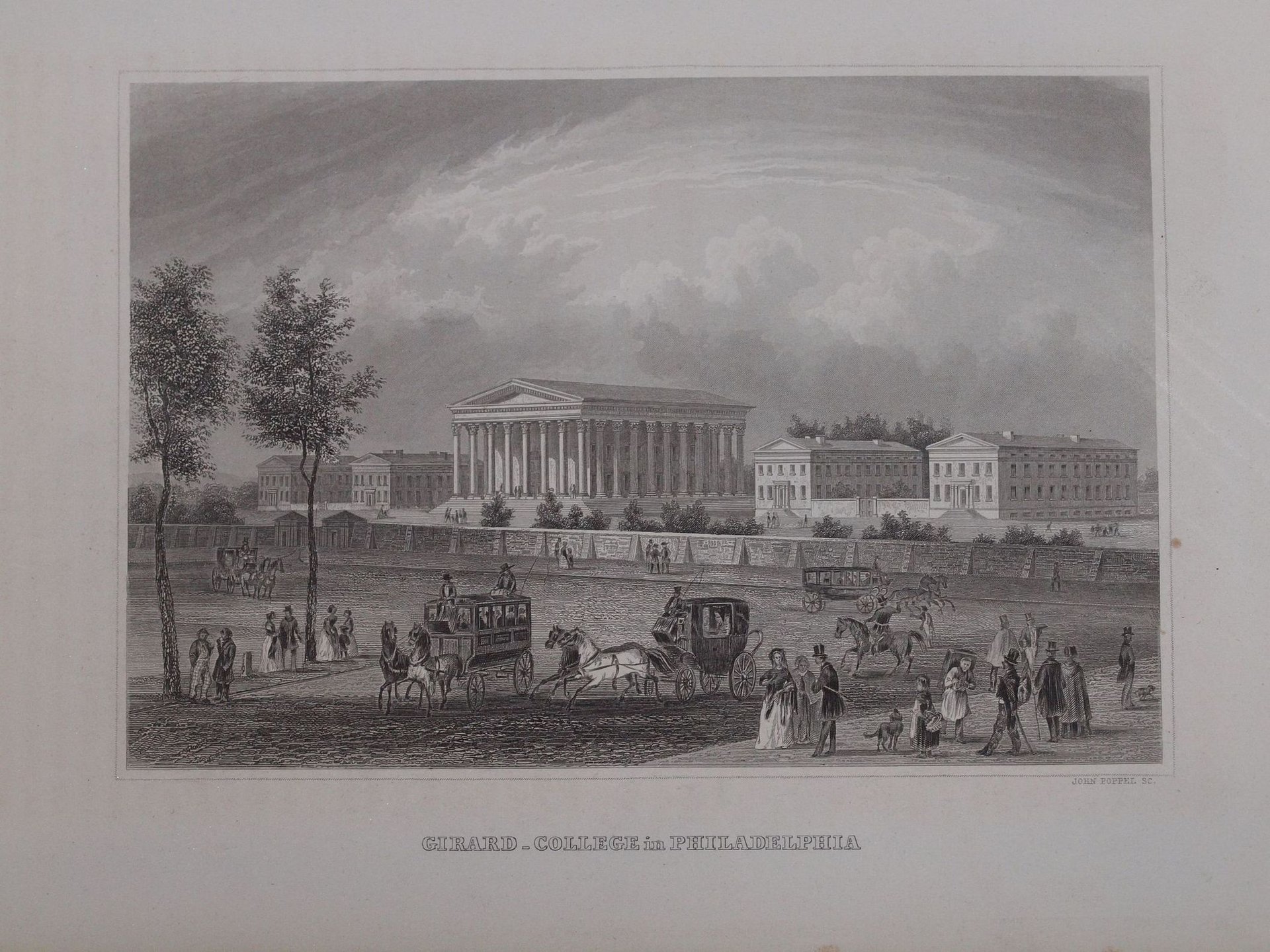 Veduta animata del College Girard di Philadelphia del 1860 circa. Autore: John Poppel Data: 1860 circa Tecnica: acquaforte Atlante: Meyer s Universum 1838-1860 circa Dimensione foglio: 16x23 cm Dimensione incisione: 11x16 cm Condizioni: Buone. Rare fioriture.Beautiful animated view of Girard College in Philadelphia of 1860 circa. Author: John Poppel Date: 1860 circa Atlas: Meyer s Universum 1838-1860 circa Technique: Steel etching Leaf Dimension: 16x23 cm (6.3x9.1 inches) Engraving Dimension: 11x16 cm (4.3x6.3 inches) Conditions: Good conditions. Some foxings and worn edge
