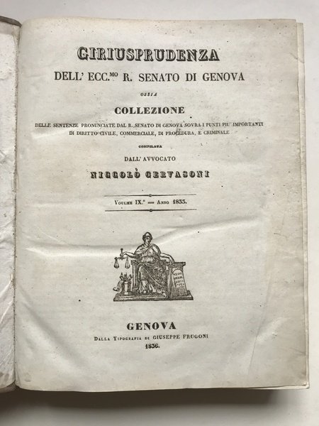 Giriusprudenza dell'ecc.mo R. Senato di Genova osia collezione delle sentenze pronunciate dal R. Senato di Genova sovra i punti più importanti di diritto civile, commerciale, di procedura, e criminale.