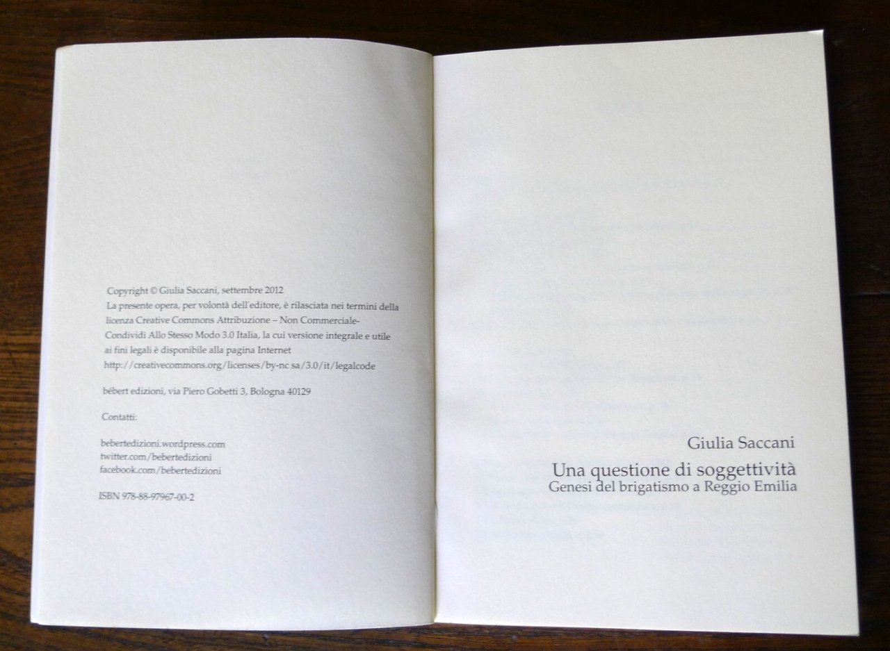 Giulia Saccani,GENESI DEL BRIGATISMO A REGGIO EMILIA,2012 Bébert[BRIGATE ROSSE